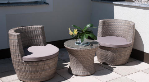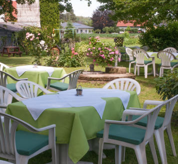 Gastgarten frühstücken.